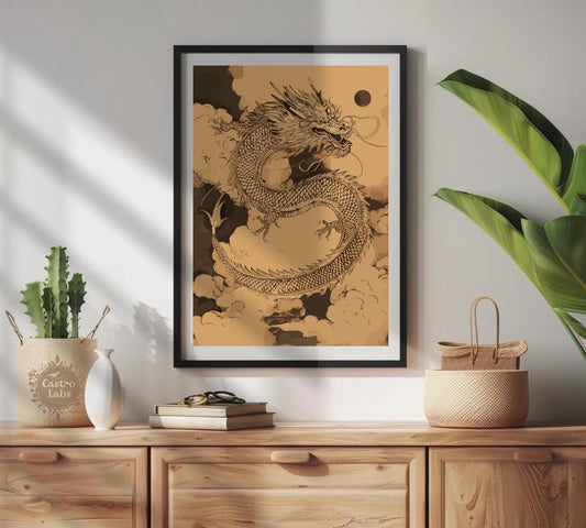 Décoration murale représentant un dragon japonais – Affiche Ryu traditionnelle à l'encre