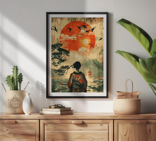 Affiche d'une Japonaise au Mont Fuji – Art mural traditionnel japonais