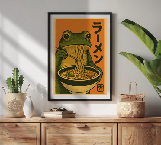 Grenouille mangeant une affiche de Ramen – Affiche japonaise Ukiyo-e