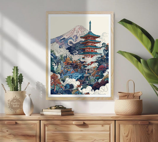 Affiche de pagode japonaise - Œuvre d'art de sanctuaire japonais