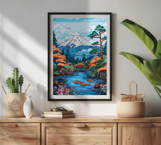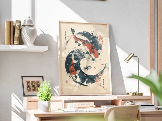 Affiche de poissons koï japonais - Art de la culture japonaise