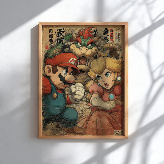 Affiche Mario, Bowser et la princesse Peach - Affiche d'anime japonais rétro