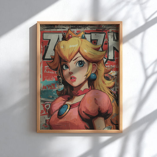 Princesse Peach : affiche de style art japonais, art mural animé
