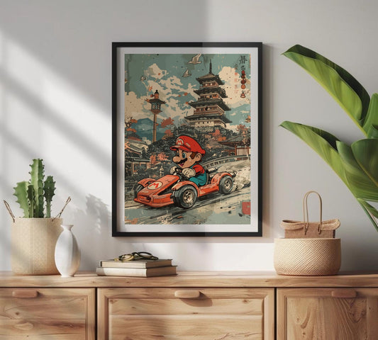 Affiche japonaise de Mario Kart : affiche rétro d'anime japonais