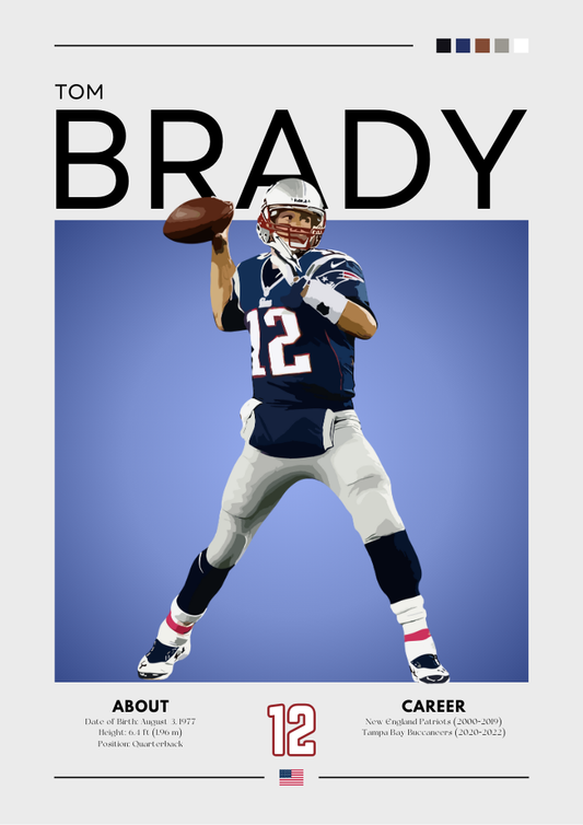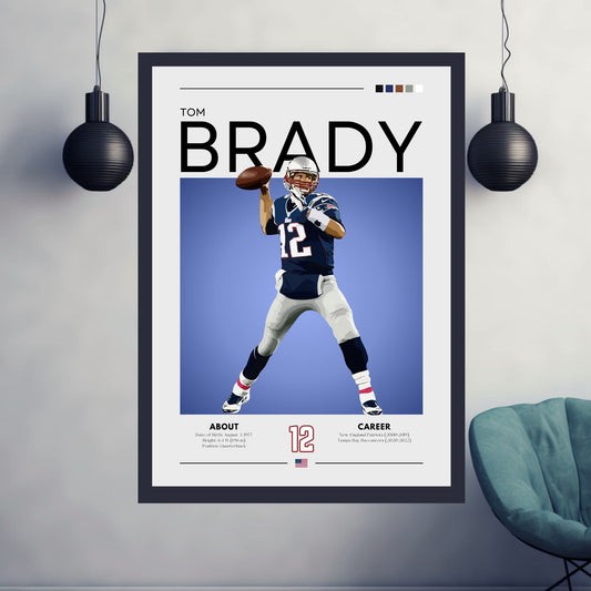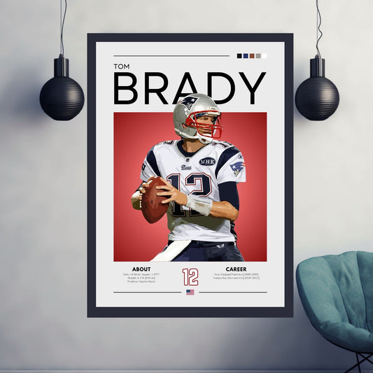 Affiche de Tom Brady – Décoration murale de légende des Patriots de la Nouvelle-Angleterre