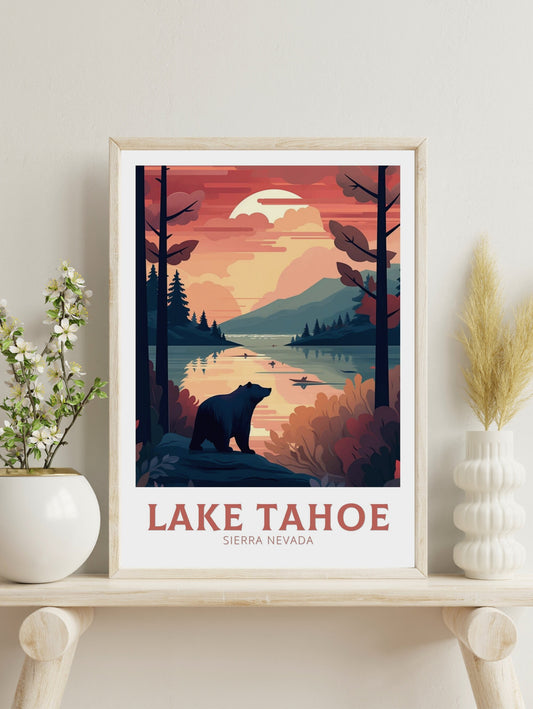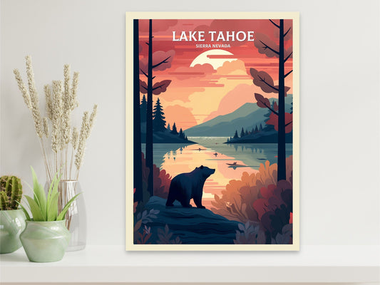 Affiche de voyage du lac Tahoe - Illustration de la Sierra Nevada