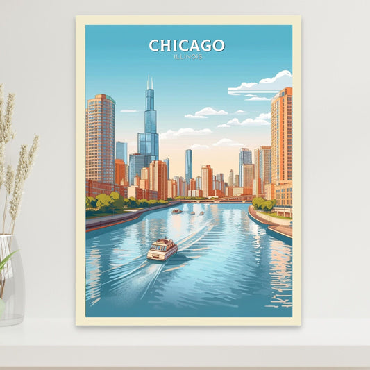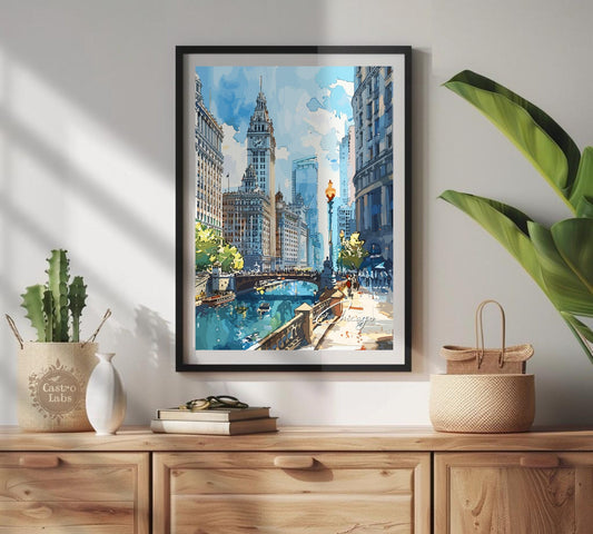 Décoration murale de voyage à Chicago - Affiche aquarelle