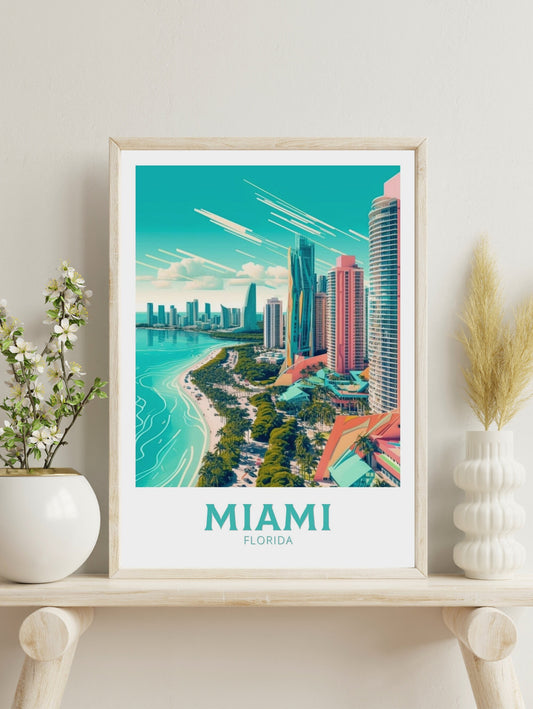 Affiche de voyage aquarelle de Miami - Illustration de Floride