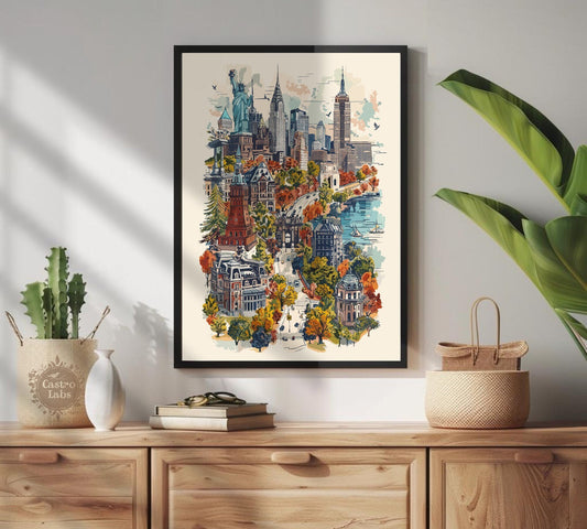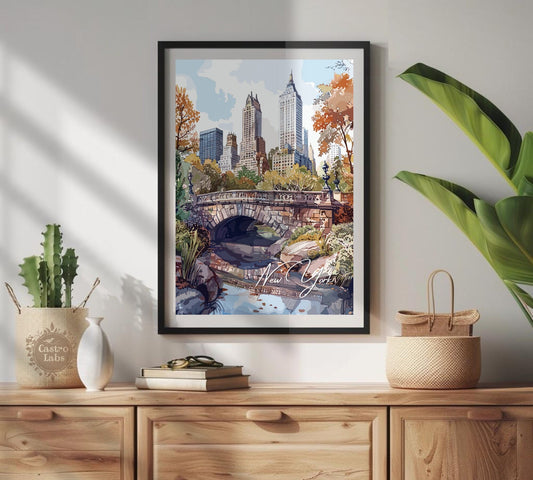 Affiche de voyage à l'aquarelle de New York - Illustration de Central Park