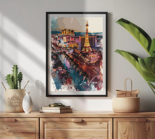 Affiche de voyage aquarelle de Las Vegas - Œuvre d'art vintage