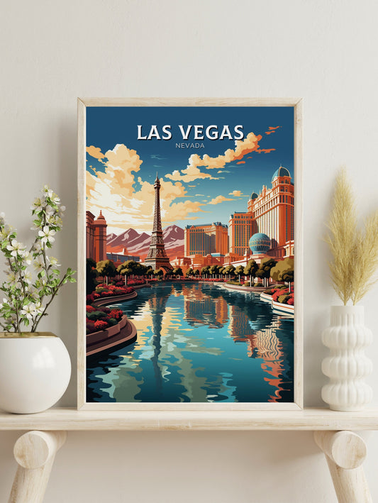 Affiche de voyage de Las Vegas - Illustration des fontaines du Bellagio