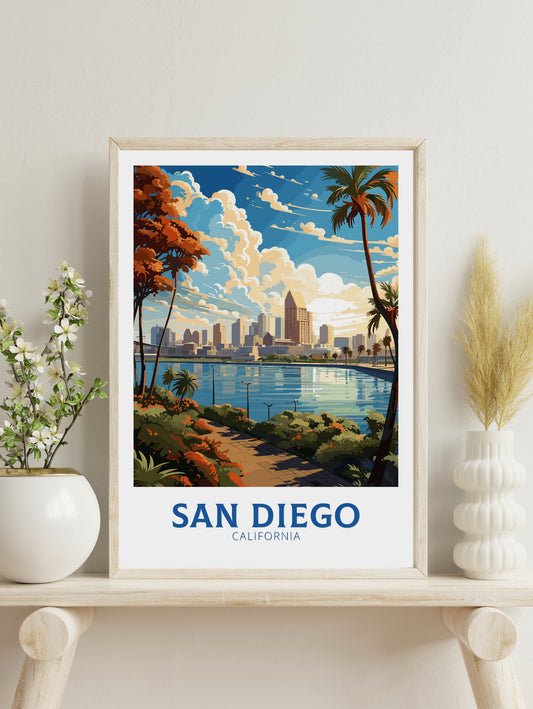 Affiche de voyage sur la skyline de San Diego - Illustration californienne