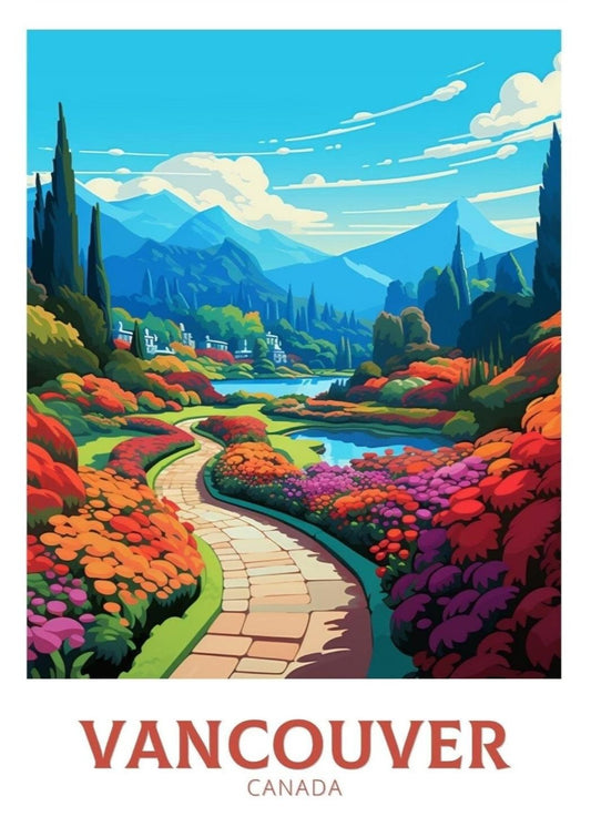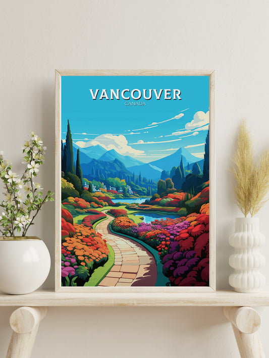 Affiche de voyage de Vancouver - Œuvre d'art des jardins Butchart