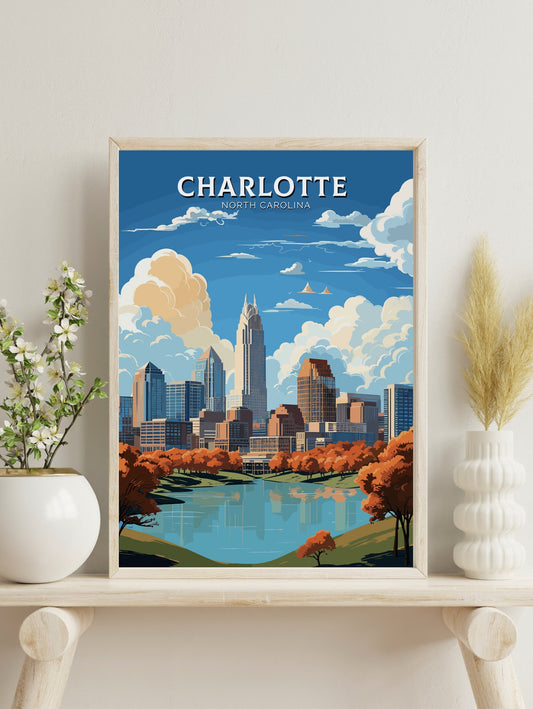 Affiche de voyage de Charlotte - Illustration de Caroline du Nord