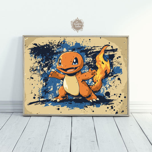Affiche de paysage de Salamèche - Impression d'anime Pokémon japonais