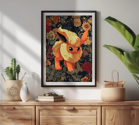 Affiche Pokémon Pyroli, style tapisserie japonaise