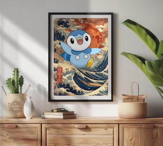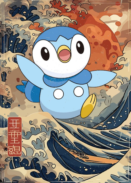 Affiche d'art japonais Piplup - Élégante tapisserie Pokémon pour les fans d'anime et de jeux vidéo