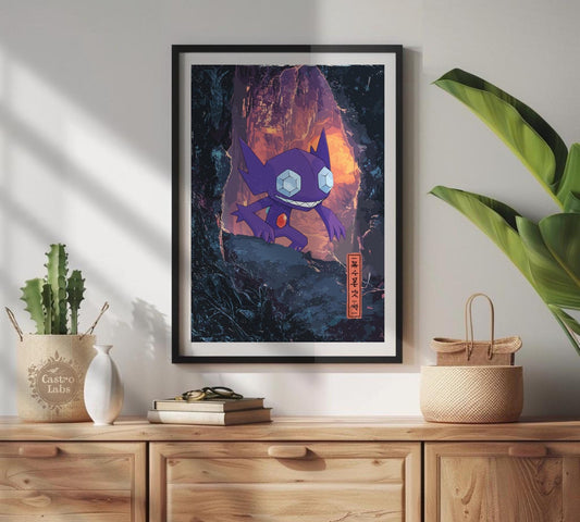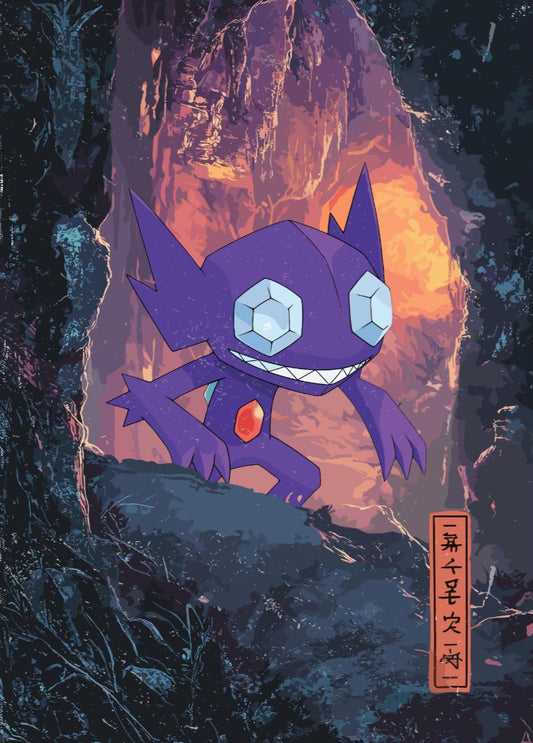 Affiche japonaise Sableye - Décoration murale Pokémon légendaire | Décoration d'anime imprimable