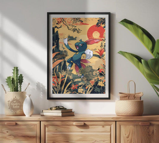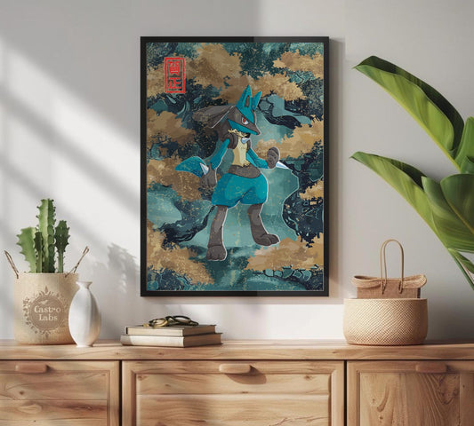 Affiche Lucario : œuvre d'art Pokémon de style tapisserie japonaise
