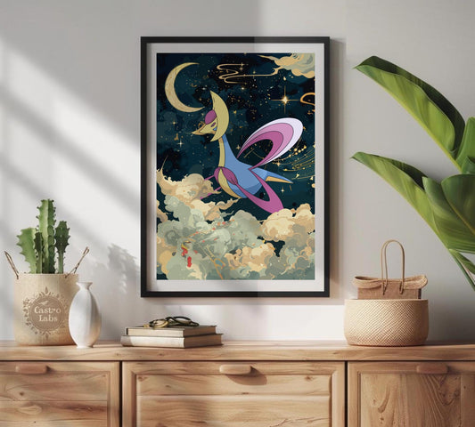 Affiche Pokémon Cresselia : art d'anime de style japonais