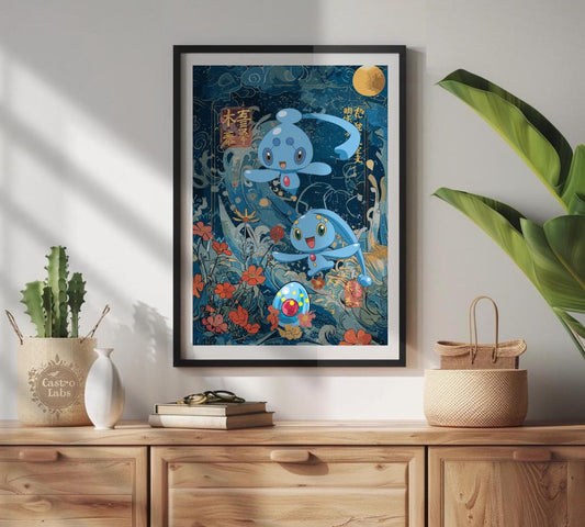 Affiche Pokémon Manaphy et Phione - Illustration de style japonais