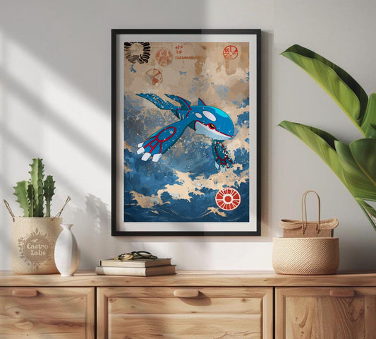 Affiche Pokémon Kyogre : illustration Pokémon Go de style japonais