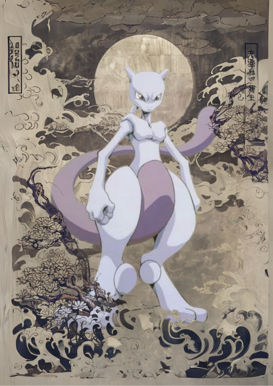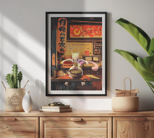 Affiche Mewtwo Ramen - Décoration murale Pokémon japonaise | Décoration Anime et Nouilles