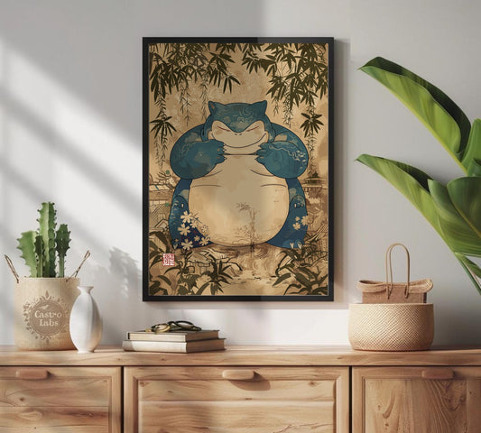 Tapisserie japonaise Ronflex - Affiche d'animation Pokémon et décoration murale relaxante
