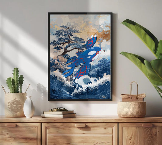 Affiche de l'anime Pokémon Kyogre - Style tapisserie japonaise
