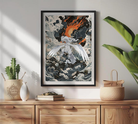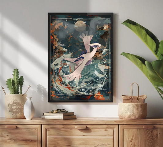 Affiche Pokémon Lugia : illustration inspirée du JCC Pokémon de style japonais