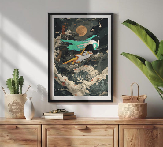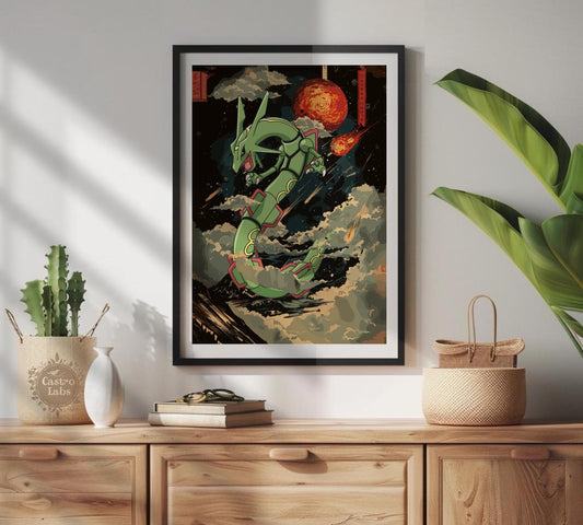 Affiche japonaise Rayquaza - Illustration d'anime Pokémon pour une décoration murale moderne