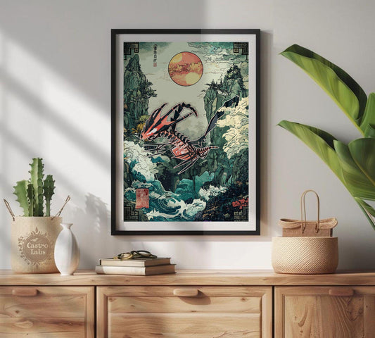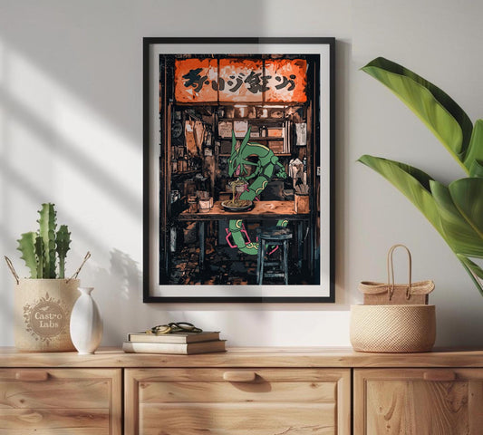Affiche Ramen Rayquaza - Décoration murale Pokémon japonaise | Décoration pour amateurs d'anime et de nouilles