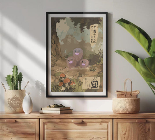 Affiche Pokémon Trio-Dug – Illustration d'anime de style japonais