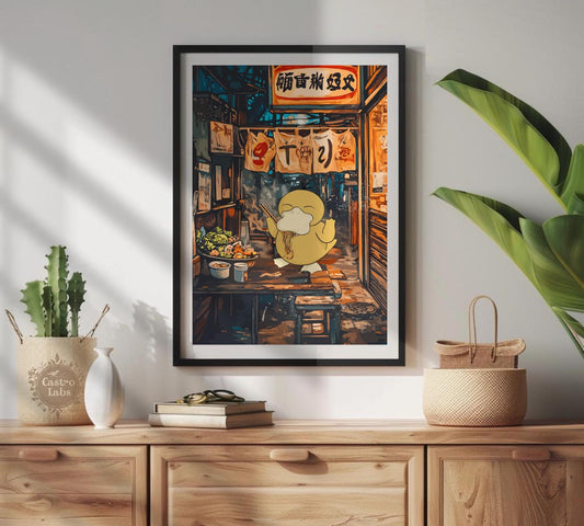Affiche Psyduck Ramen – Décoration murale Pokémon japonaise