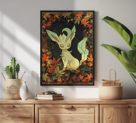 Affiche Pokémon Leafeon - Style d'art japonais animé