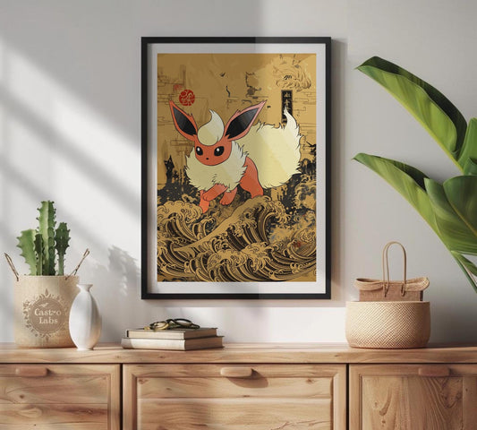 Affiche Pokémon Sulfura - Illustration inspirée des Pokémon de style japonais