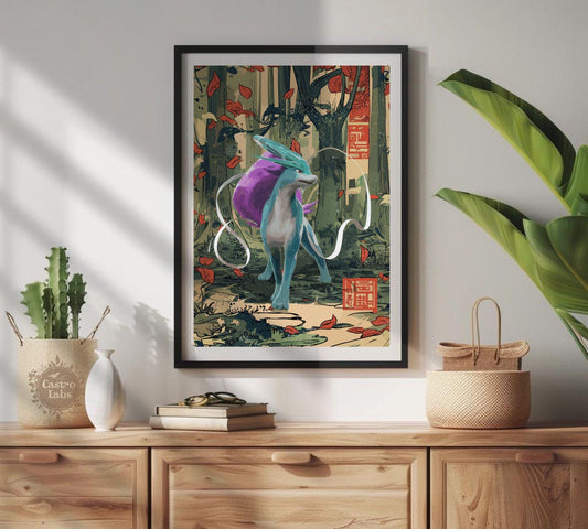 Affiche Pokémon Suicune - Décoration de salle de jeux Pokémon Art