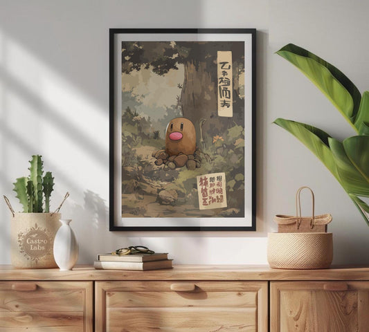 Affiche Pokémon Diglett - Illustration d'anime de style japonais