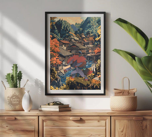 Affiche Ramen Typhlosion - Décoration murale Pokémon japonaise | Décoration Anime et Nouilles