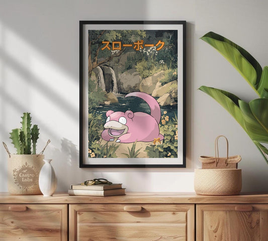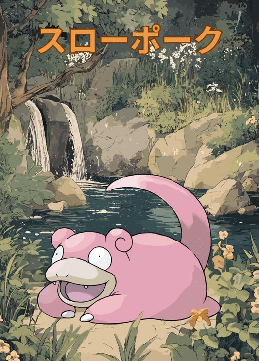 Affiche tapisserie japonaise Slowpoke - Décoration murale Pokémon Anime pour espaces cosy