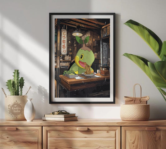 Affiche de ramen Tortipouss - Décoration murale Pokémon japonaise | Décoration de nouilles et d'anime