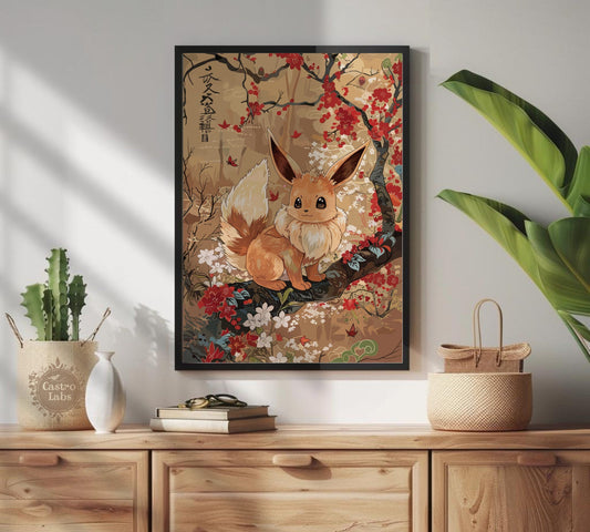 Affiche Pokémon Évoli - Style tapisserie japonaise