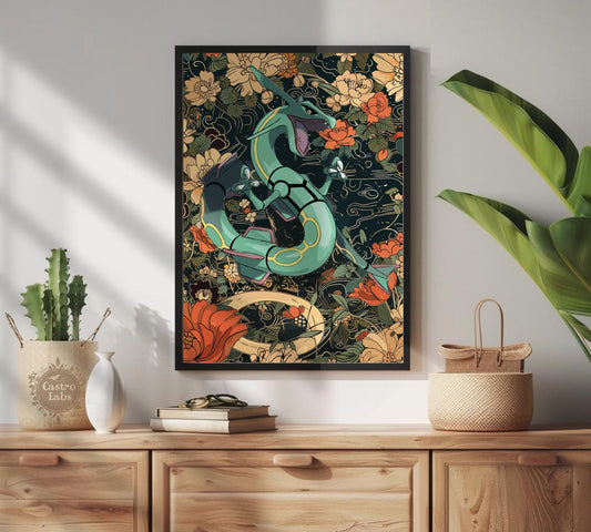 Tapisserie japonaise Rayquaza - Affiche d'anime Pokémon et décoration murale relaxante