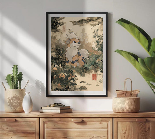 Affiche Pokémon Growlithe - Illustration de style anime japonais