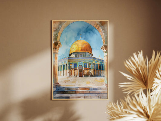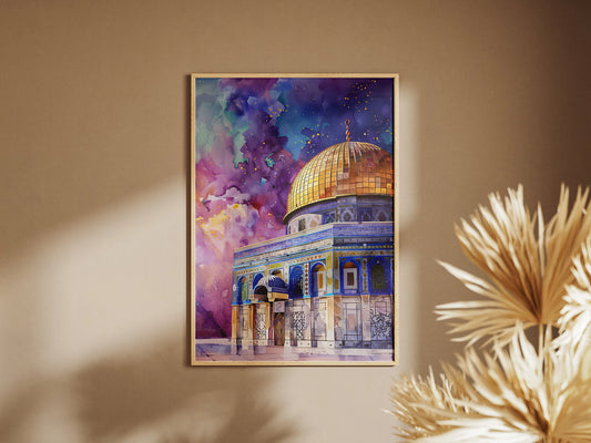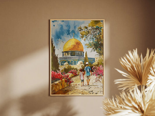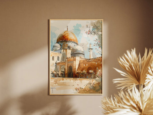 Affiche du Dôme du Rocher et de la mosquée Al-Aqsa – Art mural islamique de la vieille ville de Jérusalem