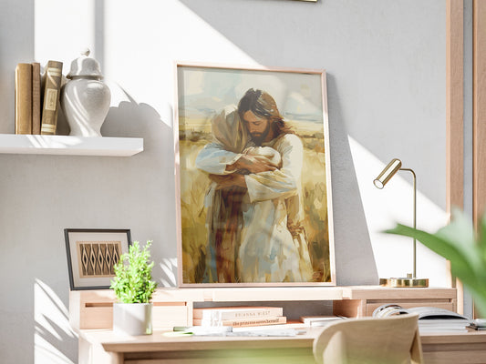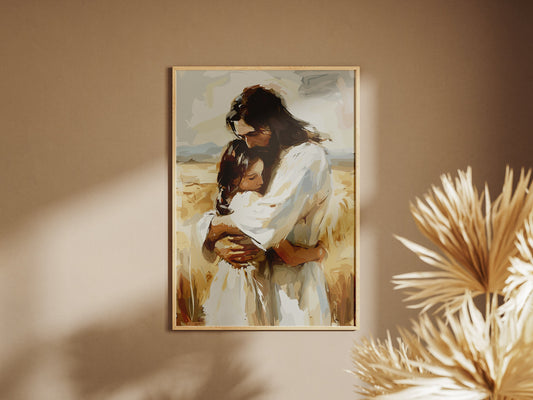 En sécurité dans ses bras – Illustration de dessin de l'étreinte de Jésus miséricordieux