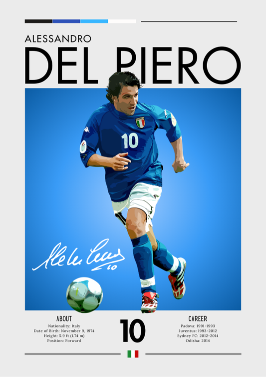 Affiche Alessandro Del Piero – Impression de légende de la Juventus et de l'Italie