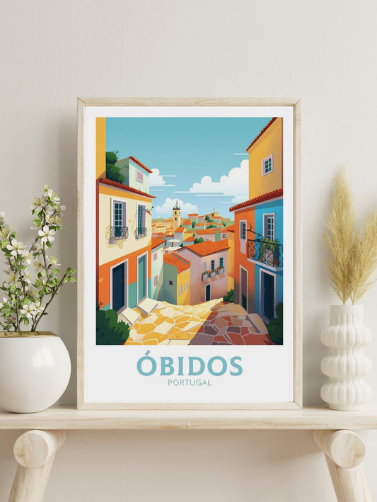 Affiche de voyage d'Óbidos - Œuvre d'art du Portugal