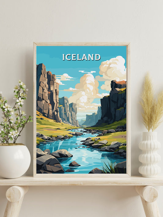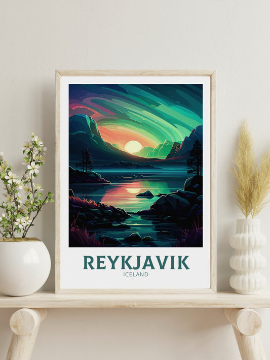 Affiche de voyage à Reykjavik - Illustration d'Aurore boréale