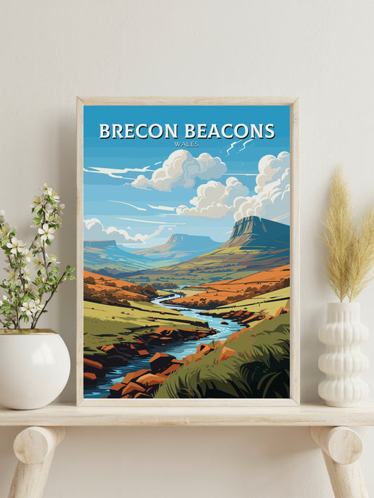 Affiche de voyage des Brecon Beacons - Illustration du Pays de Galles
